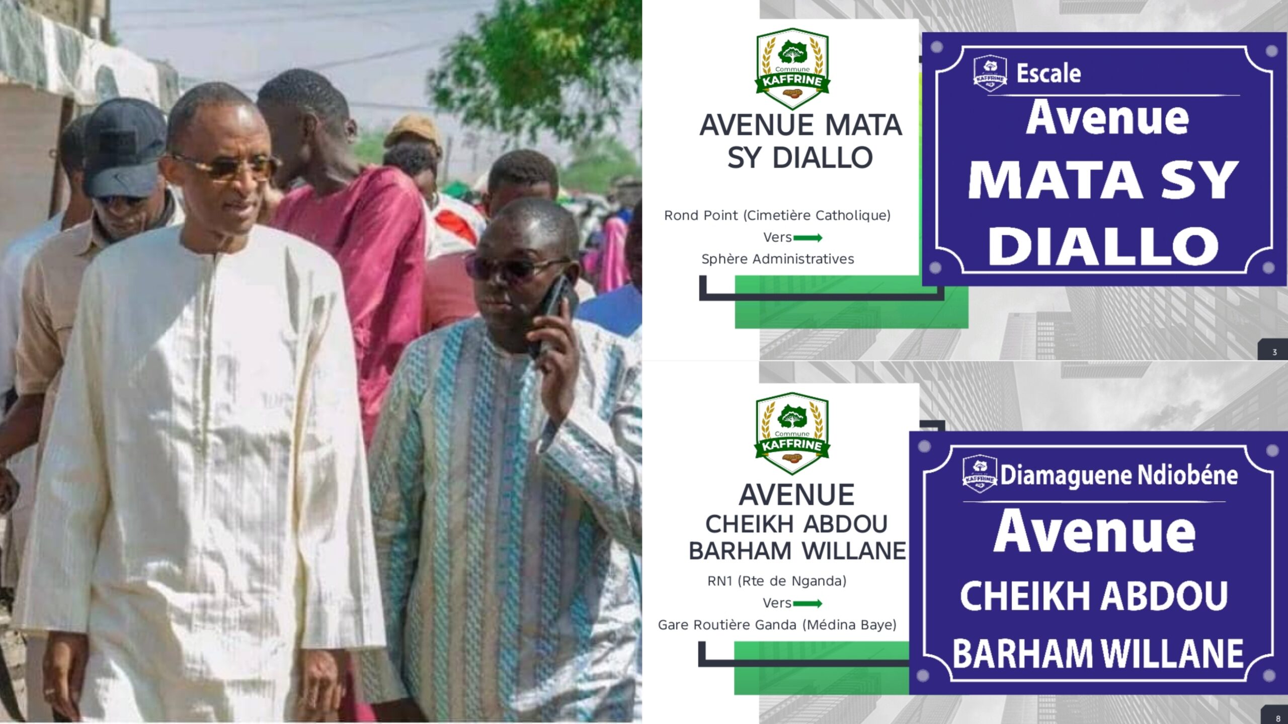 Cet événement, qui restera gravé dans la mémoire collective, a vu une forte mobilisation des populations venues assister à cette cérémonie empreinte d’émotion et de reconnaissance. Désormais, plusieurs artères de la ville portent les noms de figures emblématiques, en hommage à leur engagement et à leur contribution au développement de Kaffrine et du Sénégal.