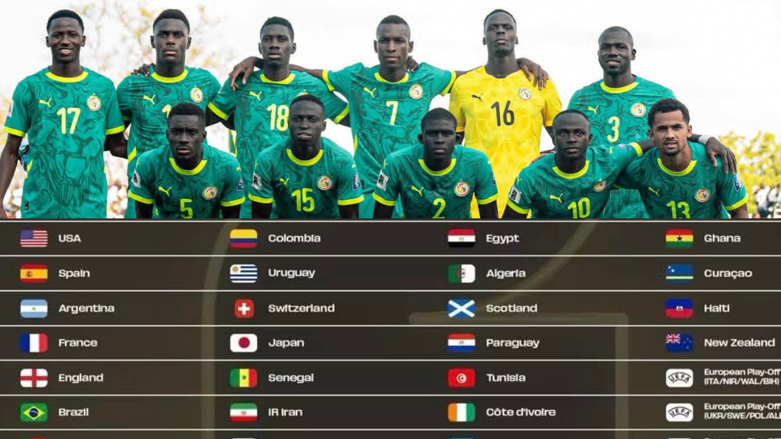 Le deuxième chapeau, où figure le Sénégal, comprend également la Croatie, le Maroc, la Colombie, l’Uruguay, la Suisse, le Japon, l’Iran, la Corée du Sud, l’Équateur, l’Autriche et l’Australie.