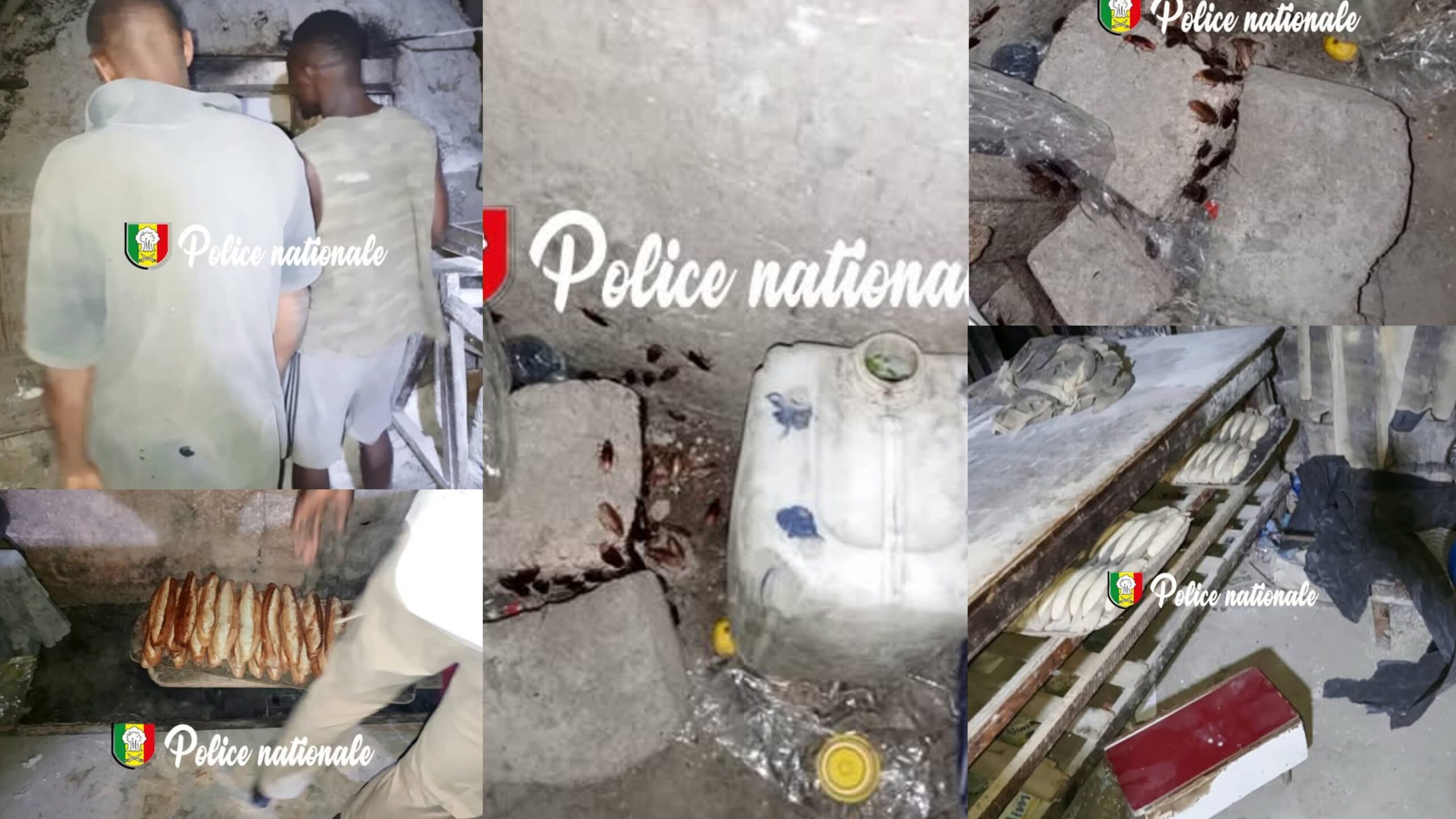 L’inspection menée sur place a révélé un niveau d’insalubrité alarmant. Deux cent vingt-sept baguettes étaient posées sur un drap impropre où circulaient des vers de farine. Les agents ont également trouvé une machine archaïque servant au mélange de la farine, deux fours alimentés au charbon, des cafards rampant à proximité des pains, onze bouteilles d’eau ouvertes utilisées pour la préparation, ainsi qu’une vingtaine de plateaux remplis de boules de pâte. Moisissures microbiennes, sacs de farine étalés à même le sol et chariots inadaptés complétaient ce tableau d’hygiène catastrophique, le tout dans une atmosphère imprégnée d’une forte odeur nauséabonde.